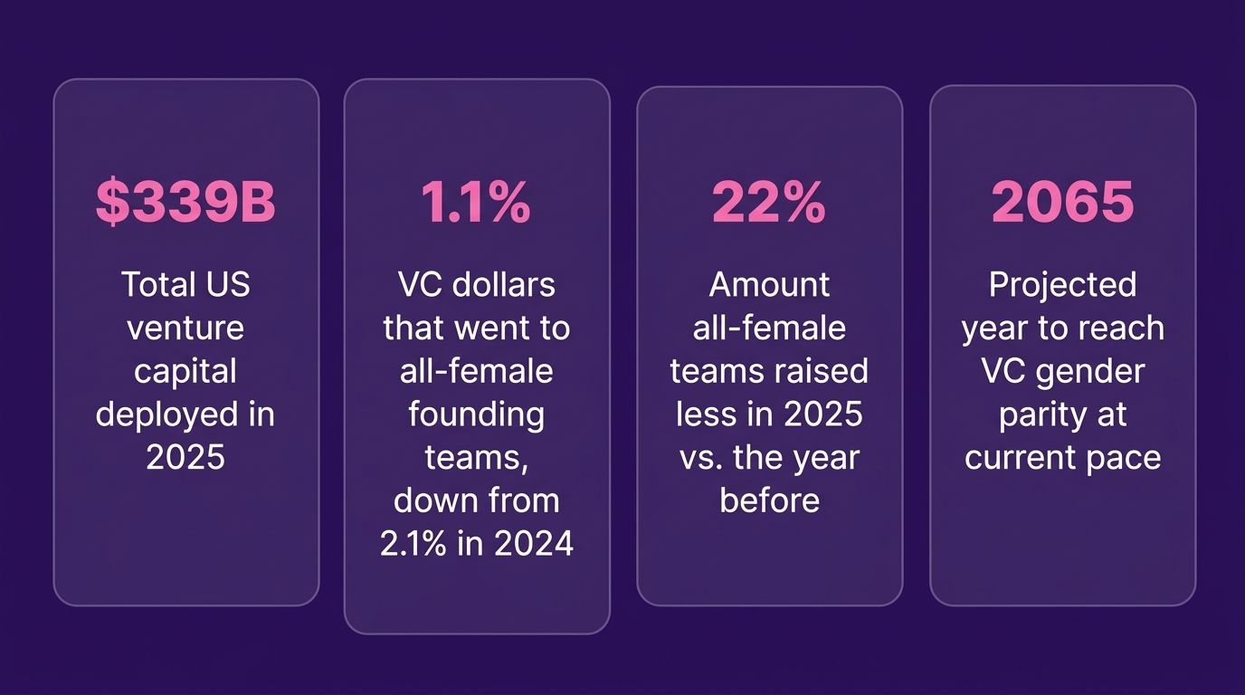 In 2025, US venture capital deployed $339 billion. All-female founding teams raised 1.1% of it. Two months into 2026, February alone deployed $62.5 billion, the largest single-month venture deployment on record. With $160 billion more already committed and waiting to deploy, 2026 is on track to shatter every record.